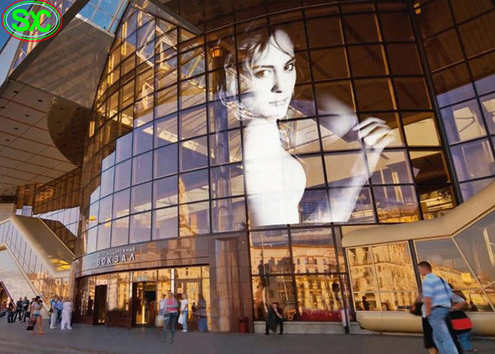 la trasparenza 1.Great da 60%-92%, è installato vicino al vetro della finestra del negozio o di grande parete di costruzione di vetro. Assomigliare ad una video parete principale completamente trasparente da lontano sempre quando più dei 10m.